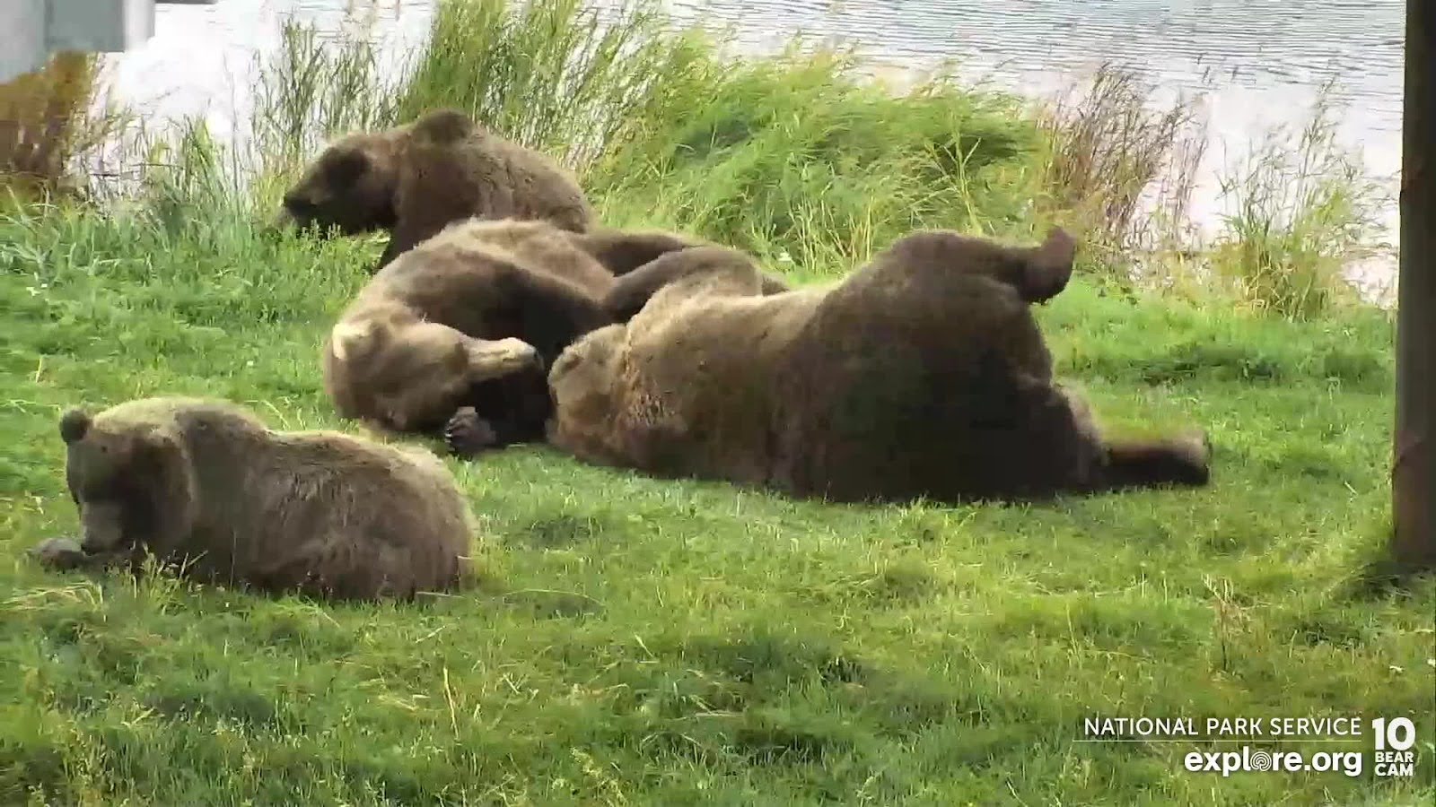 Why did the families bond so closely in 2022? How did kinship, or their sense of it, influence their behavior? We’d have to ask them to know for sure. Since we can’t do that, then maybe we can draw some conclusions based on their behavior and biology. 909 and 910 are siblings from the same litter and were socialized to each other from their experiences together as cubs and subadults, so they weren’t strangers. More eyes in a group increases the chance of spotting threats in advance. The cubs found consistent playmates with each other and the adults. Brown bear cub survival appears to increase with greater rates of play. Strong social bonds between mother bears may also reduce cub mortality during periods of food scarcity or social stress.