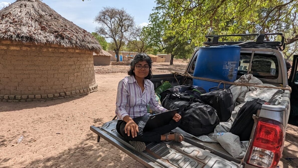 Connecting to regional team from a cell phone hotspot at the edges of a community meeting in rural Chad. Photo: WCS.