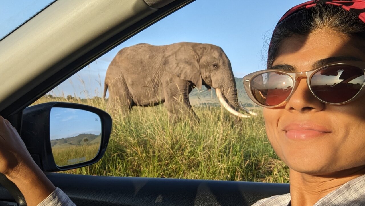 Driving through a national park in Kenya, where I live. Photo courtesy of Sharanya Kanikkannan.