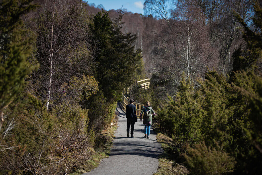 Visitors to Dundreggan and its acclaimed Rewilding Centre can explore the lush juniper and birch woodlands and enjoy walks along forest trails, including an accessible, low-level Juniper Path, known as Ceum an Aitinn in Gaelic. In total, the woodlands on the lower part of the estate are home to some 50,000 juniper and 80,000 silver birch.