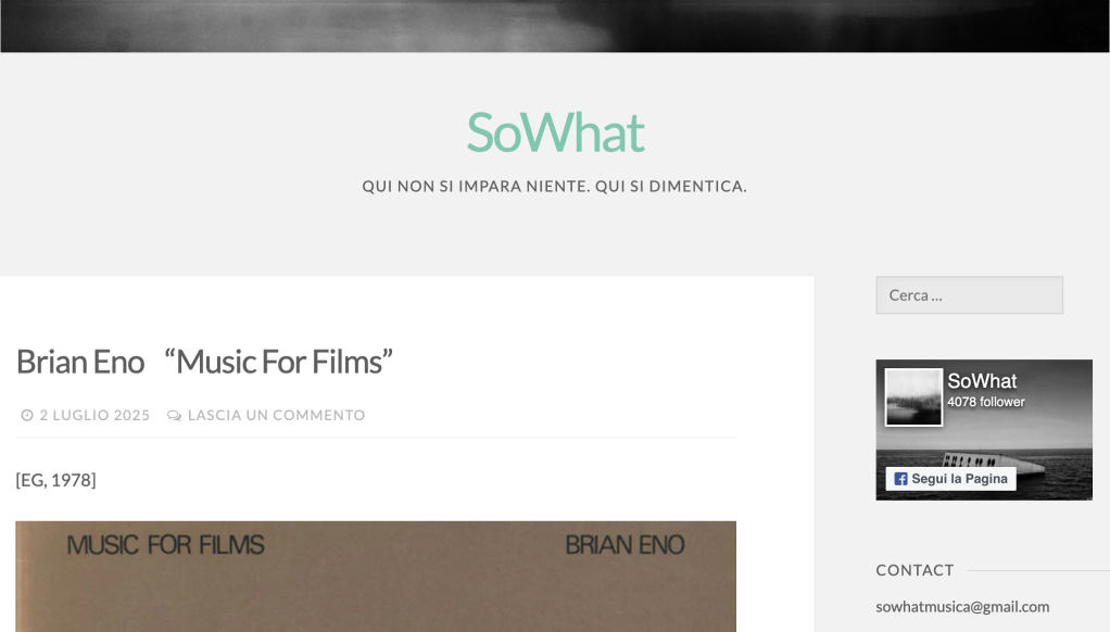 For those of you who read Italian, SoWhat is a fine blog which covers ambient and drone music elegantly.