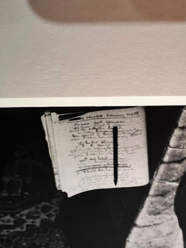Yes, when John Lennon and Paul McCartney appeared — in one of the photos in the latter’s current exhibit at the de Young Museum in San Francisco — to be contemplating handwritten notes that were blurry, which is to say, not the focal point of the image, I sure did take a close-up shot and flip the detail upside down so I could ascertain what song they were in the process of writing. It was “I Saw Her Standing There.” The exhibit is Paul McCartney Photographs 1964: Eyes of the Storm, which runs from March 1, 2025, through October 5, 2025.