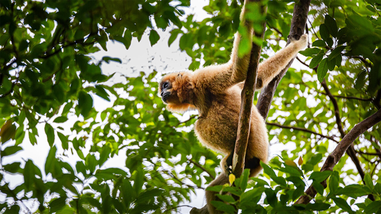 Yellow Cheeked Gibbon (Nomascus gabriellae), Keo Seima Wildlife Sanctuary, Cambodia. Photo credit: Adam Roberts/ WCS Cambodia.
