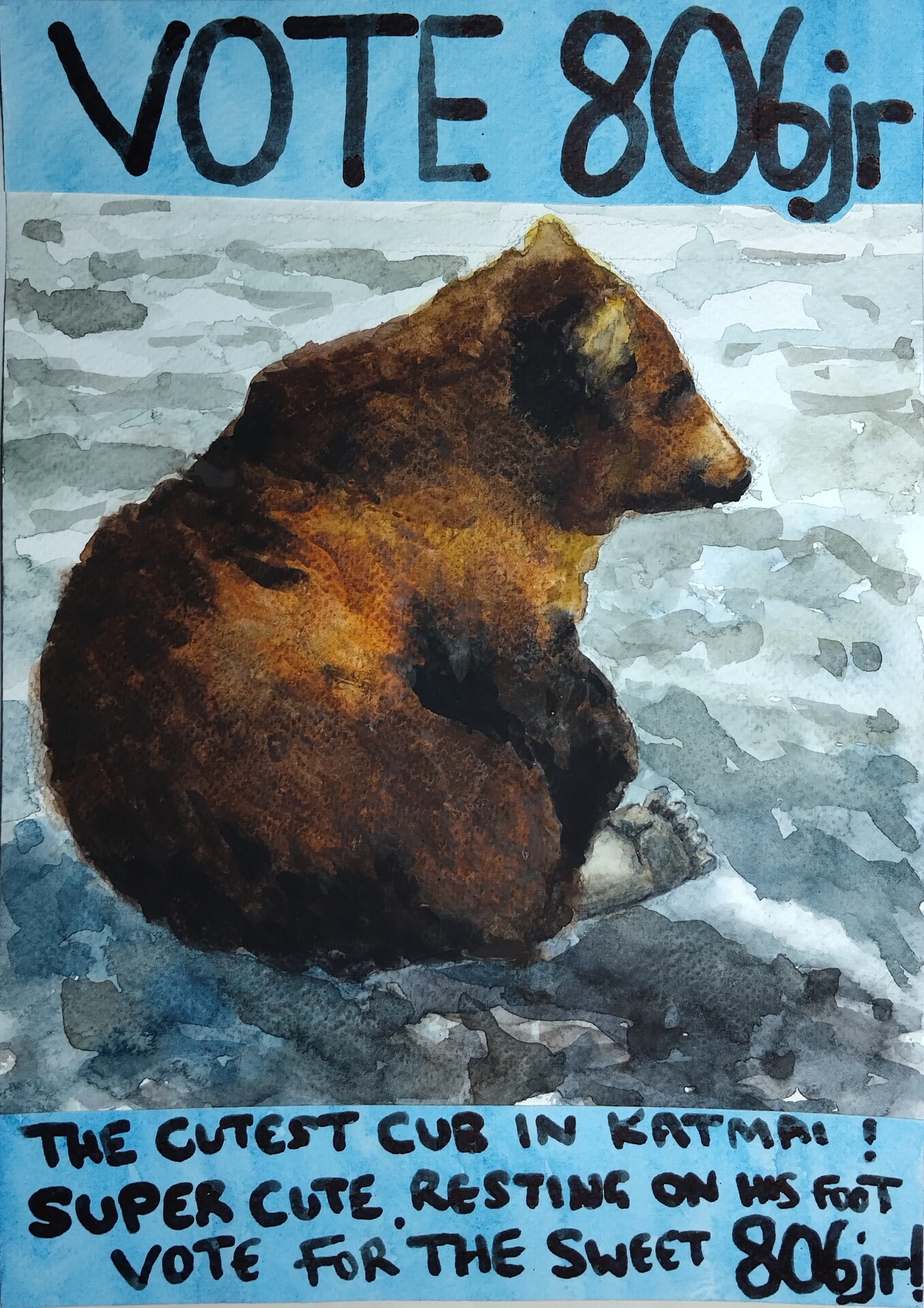 14. Vote for 806jr – the cutest cub in Katmai! Super cute, resting on his foot. Vote for the sweet 806jr! by katbears katbears