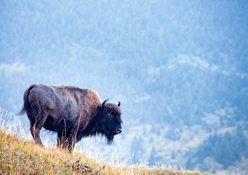 Bison, also known as Buffalo, are one of Canada’s largest mammals and roamed freely on the great plains all across North America a century ago but overhunting drove them almost to extinction. Wood Buffalo National Park was established to protect the existing herds. Subsequently reintroduction of Bison to some of our national parks has also occurred in collaboration with local Indigenous communities. This photo was taken at Waterton Lakes National Park. Bison have been reintroduced to Banff National Park which is a good news story. You can learn more about Bison at our blog.