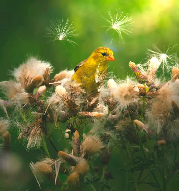 I remember thinking what an incredible photo it was—perfectly capturing the light, the songbird, and the delicate thistle seed fluff (or pappus) floating through the air. A beautiful composition featuring a bird that’s a favourite among many of our members. In fact, I recently spoke with a member who shared that the American Goldfinch was her spark bird—the one that first ignited her excitement and inspired her to learn more about local birds in her area.
