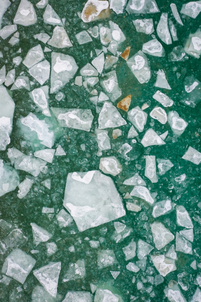 It looks like a scene from Minnesota, Manitoba or Alaska. Shelves of ice cluster along the shoreline. Waves carve little caverns into them, icicles smattered with sand hanging from their ceilings. Miniature icebergs with eccentric rings of frozen froth idle offshore.