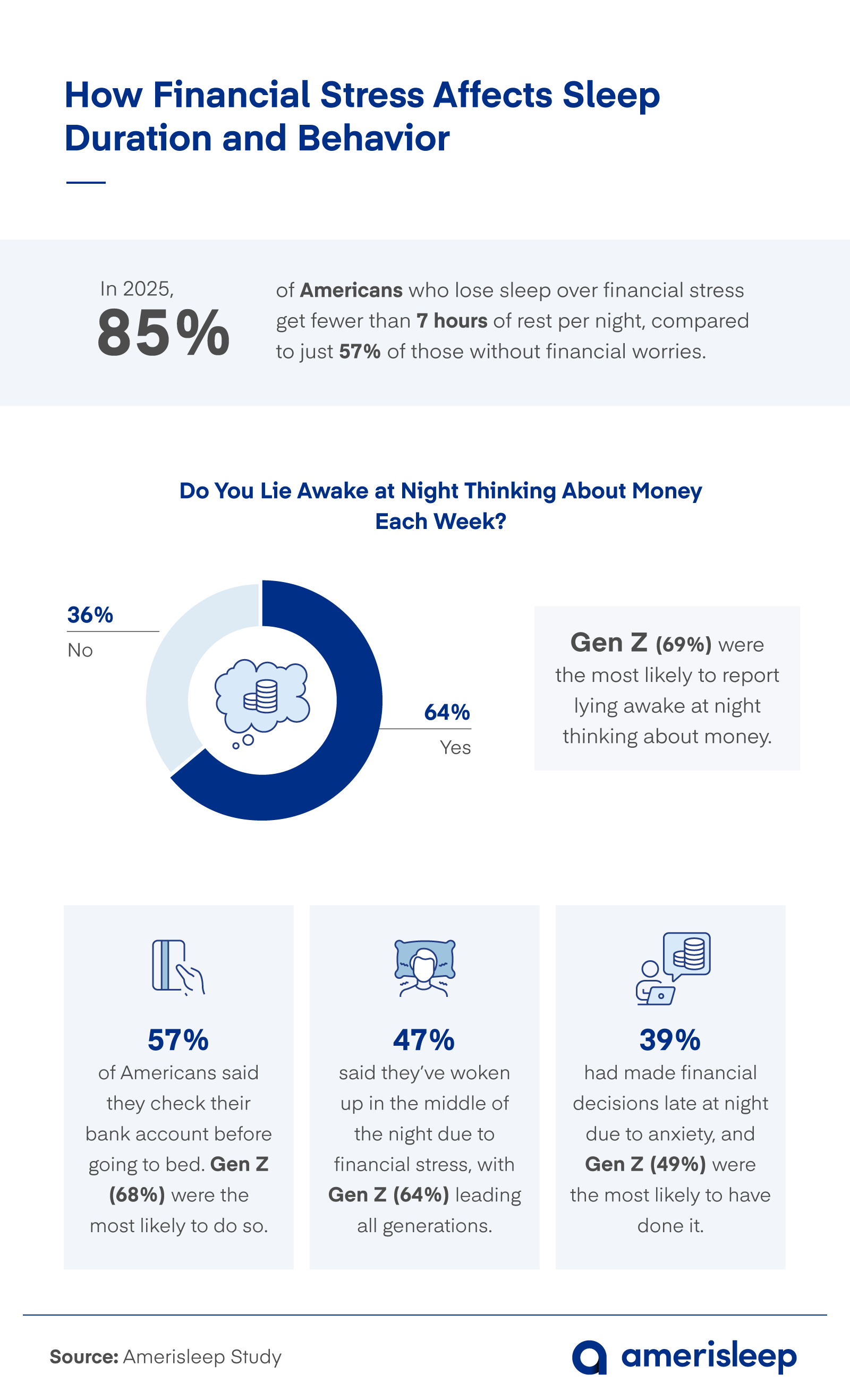 - Gen Z (69%) is the most likely to lie awake thinking about money.