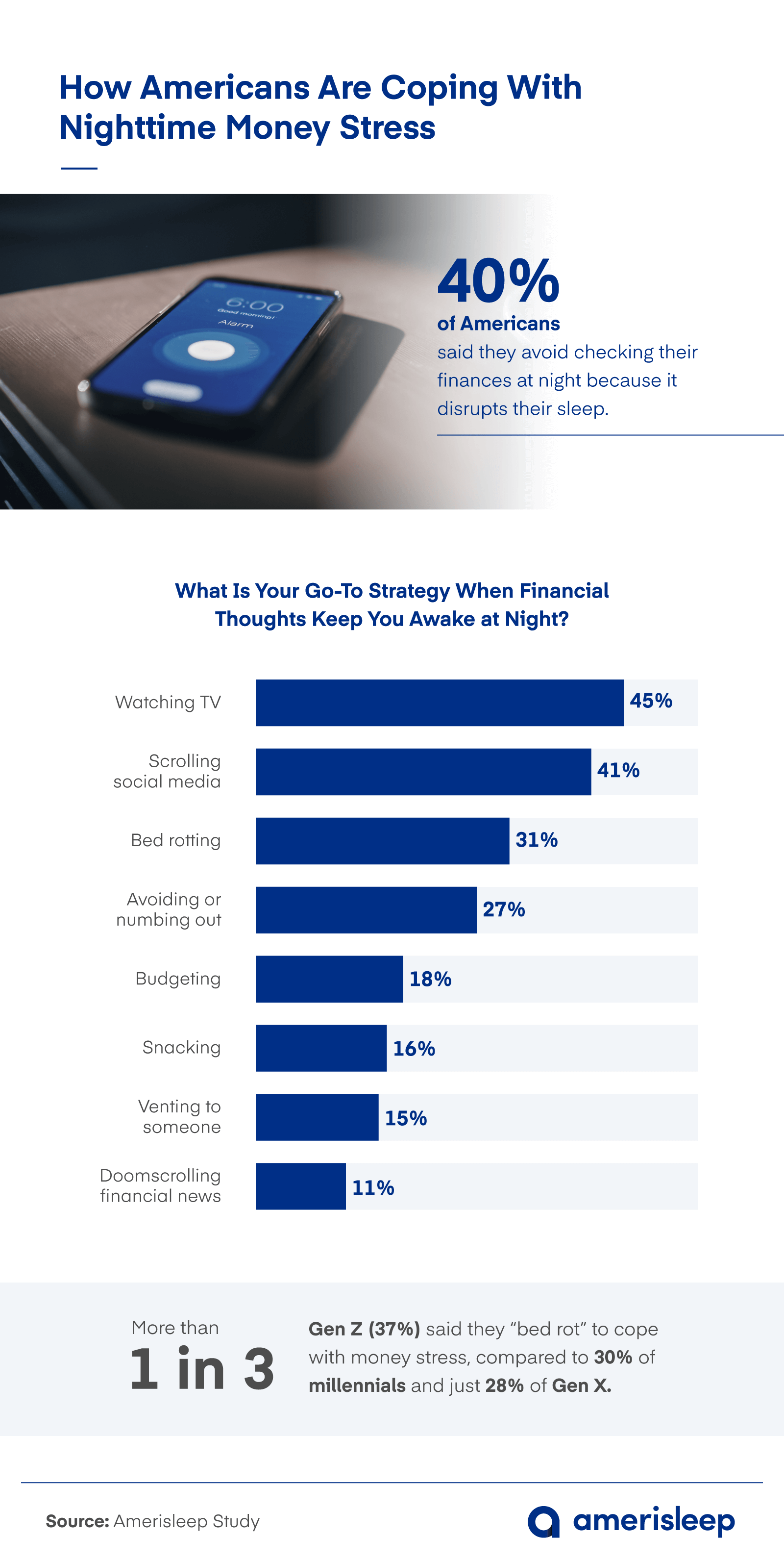 - More than 1 in 3 Gen Z adults (37%) say they “bed rot” to deal with money stress.