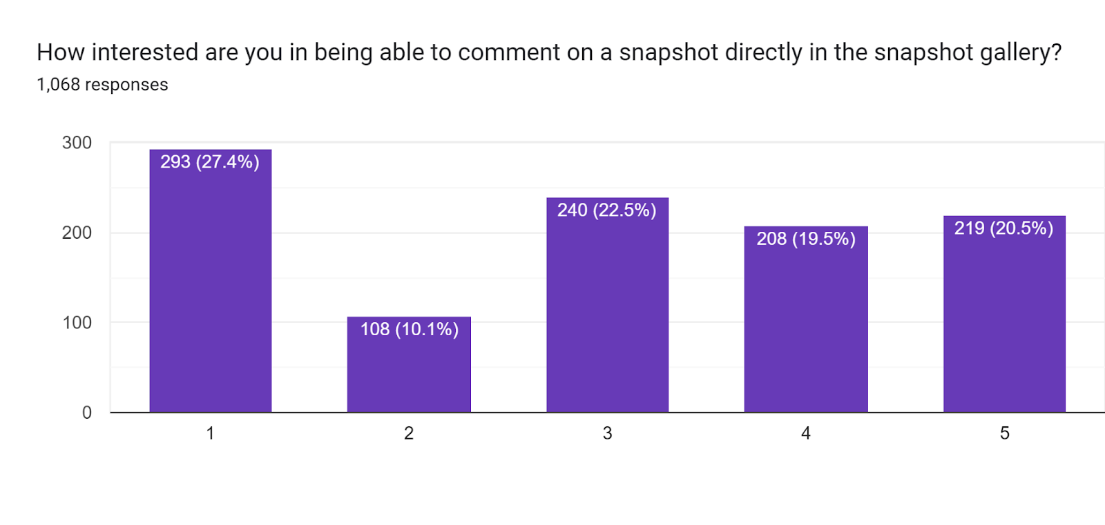 To be honest, this is a feature that the explore staff is very strongly interested in. We use the Fan Favorites section to create the Fan Cam Friday newsletter. As it stands, it is not super obvious how to favorite other community members’ snapshots. I would not be surprised if some people learn right now from this blog post that they can go to a gallery and favorite other people’s snapshots. Moving this feature directly to the comments would add another way to interact with your friends AND it would help us curate the Friday newsletter better. With 36% of the people uninterested and 42% of people interested, we will probably move forward with this feature!