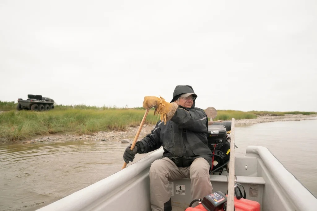 Sam Hunter in his boat on the Winisk River. Photo: Sydney Walsh/Audubon