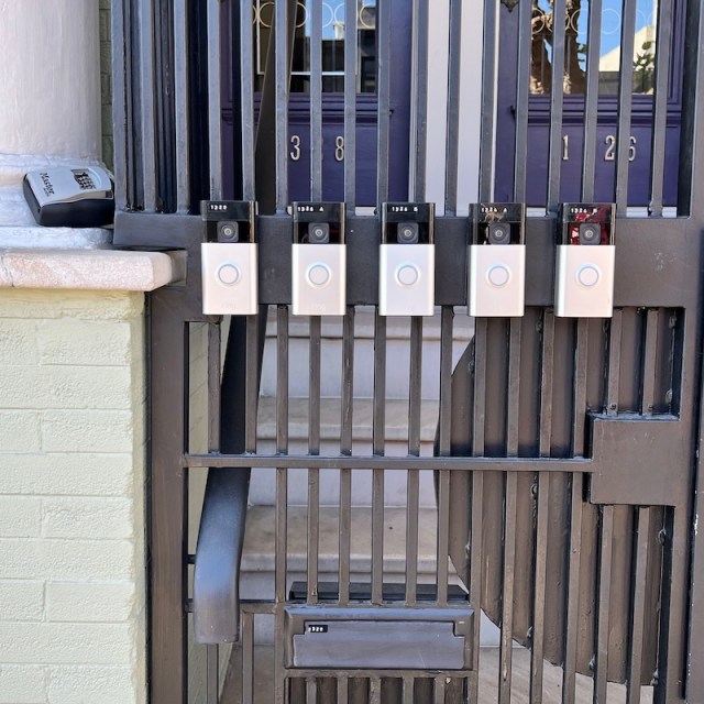 Another day, another doorbell, or set of doorbells. I like to think the Master Lock set-up on the left is for when the electric buttons fail. Bonus points for the one apartment that gets a mailbox.