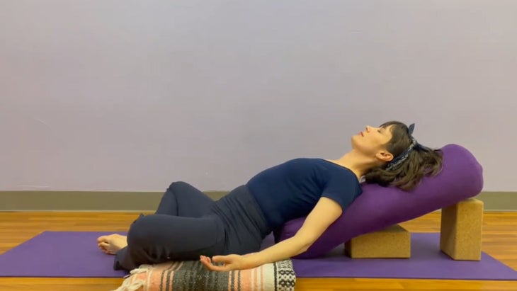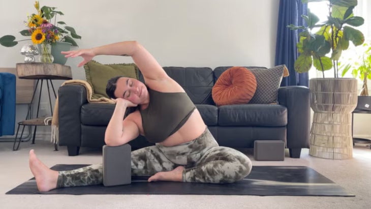 There’s something instantly soothing about using props in yoga. And when you can use them in every pose of a sequence, it’s even more relaxing. In Amber Burke’s Restorative yoga practice, you move through various reclining postures—on your stomach, on your side, and on your back—all while surrendering the weight of your body against bolsters (or pillows!) and blankets. Pro tip: Moving the props into position is also part of the practice. When you do so slowly and intentionally, you’ve already set the vibe for the pose before you’re even in it.
