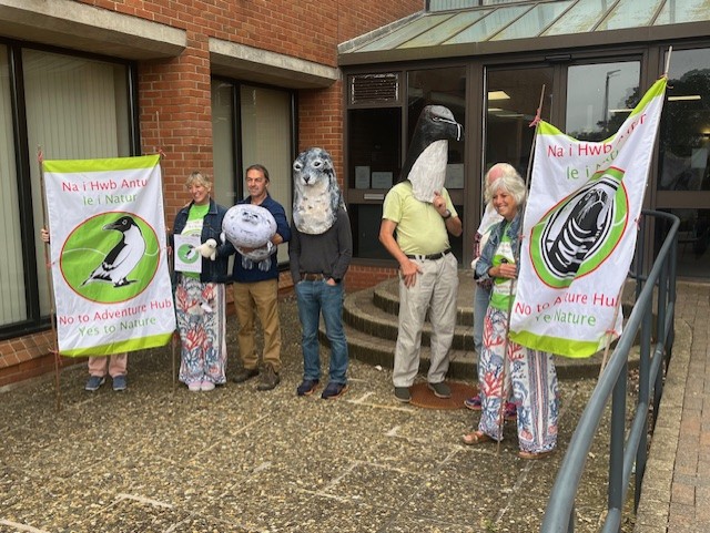 And so we, Julia Erikson from Leigh Day, Barney and David (the barristers), Lucy Lapwing from Wild Justice, me (now as a very interested member of the public), a Razorbill, a Grey Seal and quite a gaggle of locals headed off to Haverfordwest Crown Court on two very hot days of 18 and 19 June to appear in front of the Hon Justice Eyre as he decided the legal challenge. And, of course, the plaintiff, the PCNPA, were present with their lawyers and, not surprisingly, the applicant for planning permission was there too. He didn’t look very happy throughout and that was probably because, as lay persons, both he and I could tell that the case was going the way I hoped but not the way he hoped.