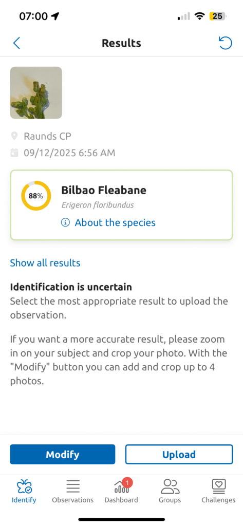 And iNaturalist has defected to Bilbao (aka Tall!) Fleabane too, 84%: