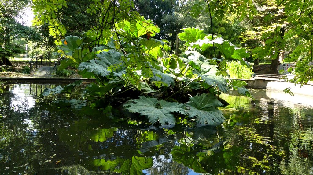 Reflections in a pond at the Botanic Garden, Swansea University.