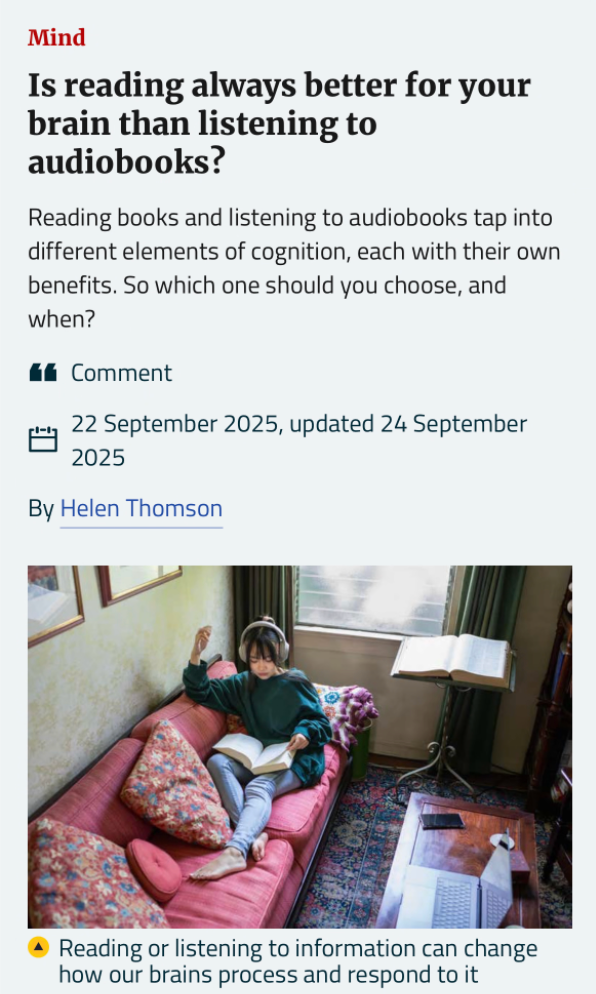 ▰ I acknowledge that when I opened this article in New Scientist, I wondered if I could listen to it.