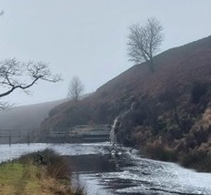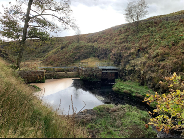 … in times of storm, the gently sloping tunnel is overwhelmed, the sluice fills and the torrent goes over the dam, down a spillway built for the purpose and straight to Hebden Bridge and the Calder valley.