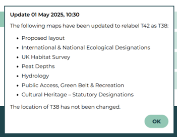 Calderdale Energy Park was built on the ruins of Calderdale Wind Farm. On Launch Day 29 April 2025, the CEP website was published with seven maps, showing the layout of 41 turbines relative to the Peat Depths, the Access, the International Designations, the Hydrology and so on. Every map was wrong because each showed a T42 and no T38.