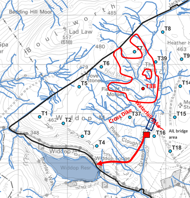 Storm flow in Greave Clough is not the same as normal flow, but you would never know that from the Scoping Report Hydrology maps 8-1, 8-2, 8-3. The absent sluice and tunnel are north of the bump on the site boundary, just above the “h” in “Greave Clough”.