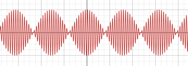 The two waves with frequency 18 Hz and 16 Hz combine to give a wave form whose pitch will be 17 Hz but whose amplitude envelope ±2cos(x –y) will have two pulses of noise every second. The piano tuner knows the strings have the same pitch when no AM occurs when they are played together.