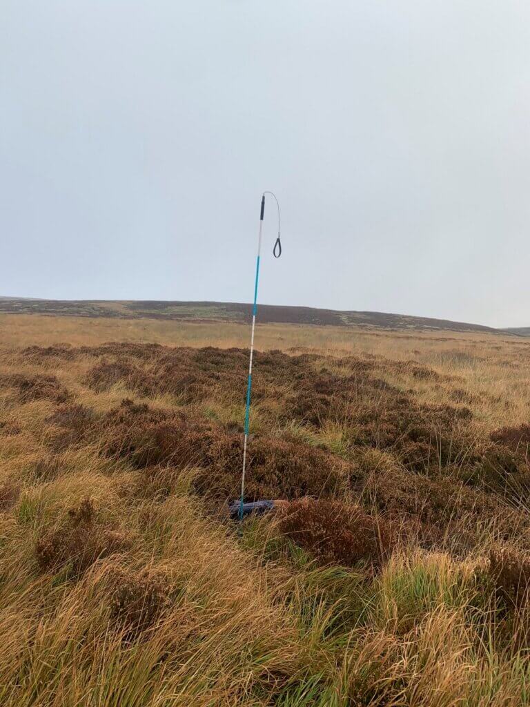 I like to reach the turbine sites the way the track would go, but Teddy the Airedale is at school, and I’m not sliding down the 1 in 4 edge without my furry belayer, so I cut in from the Pennine Way over an active bog with excellent moss hummocks, measure the T22 peat depth at 75 cm and head up the looming edge. Drizzle is blowing on a Force 5, but I strip down to a tee-shirt because it’s bloody steep.