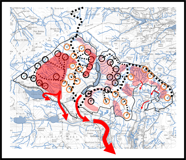 This is the Walshaw terrain problem. Where the slope is less than 10% the peat is usually 2 to 6 metres deep. To make his CEP layout, Christian Egal pushed the turbines off the deepest peat. By his own design he has admitted that it is unacceptable to chew up the deepest peat for turbine foundations and so he must risk flooding Hebden Bridge instead. The bizarre CEP layout is the consequence.