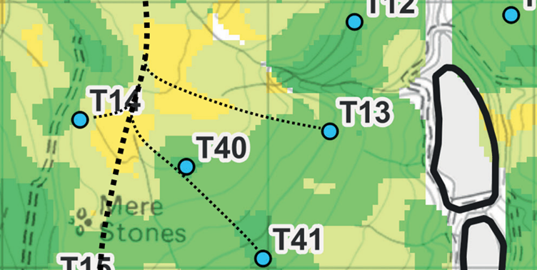 T40 and T41 are correctly spaced 3 RD apart across the prevailing wind, but T14 is too close to T40 at 2.7 RD. Downwind, T41 is far too close to T13 which is far too close to T12. Heather Hill is only wide enough for a single line of turbines along the top, served by a spine track. T12 will be damaged by T13 turbulence and suffer increased operating expenditure. The pension fund that buys CEP should ask for it to be written off on day one. It’s broken-down pensioners they finance, not broken-down turbines.