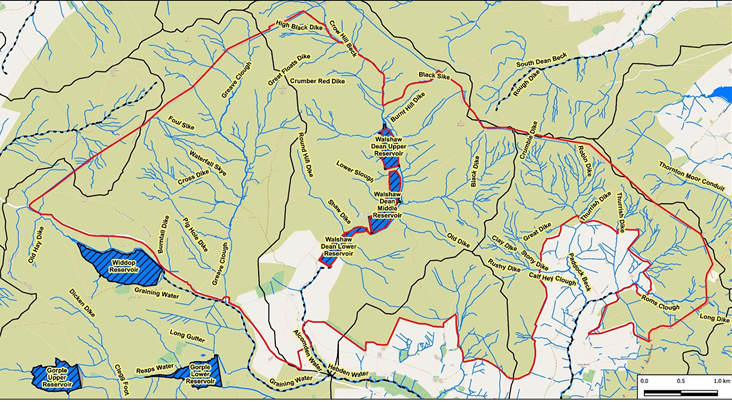 Thurrish Dike (in the hook) appears twice, once going uphill, once downhill, but Thurrish Dike is a drain on the boundary to Thurrish, which is well south of the turbine area. The main flood feature leaving the turbine site here is Mares Greave Clough which gathers the whole drainage tree and doesn’t get named. You need only look at the 6-inch map to get this stuff right, but first you must care about hydrology, which Logika don’t, on this showing.