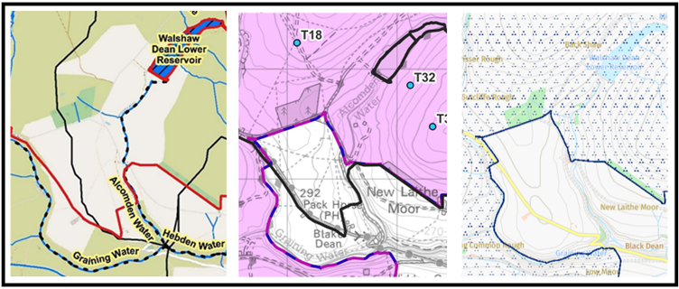 The green shading that would have obscured the contours, had Logika thought slope was important on a hydrology map, has no hydrological significance, nor is its meaning given in the key. It is an impression of the South Pennine SAC and SPA for red-listed birds, but it doesn’t agree with Defra’s MAGIC map south of the Walshaw Dean lower reservoir where the vast curlew flock gathers to feed, photographed by Kate Haslegrave. Again, Natural Power got this point right. The client has paid Logika for a misleading map about their responsibilities to the curlews on Walshaw Moor, when they already had a much better correct map.