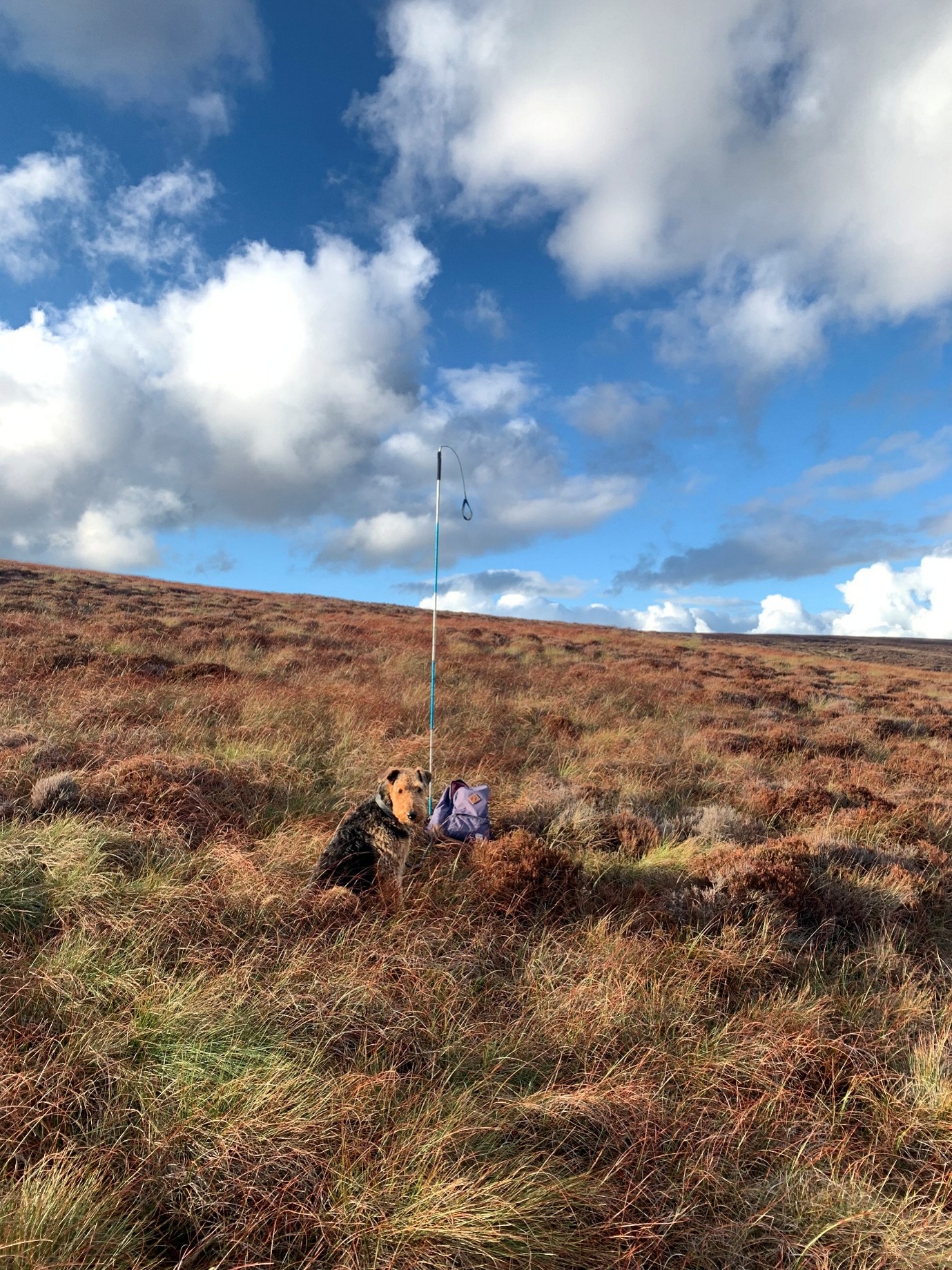 Following the route of the turbine blades (in reverse), the dog and I go straight up from Sutcliffe Plantation. As though to prove the West hypothesis on the BESS, some logging is going on inside. At the wall separating Greave Pasture from the moorland, we walk along the grouse pegs looking for a quadbike gap.